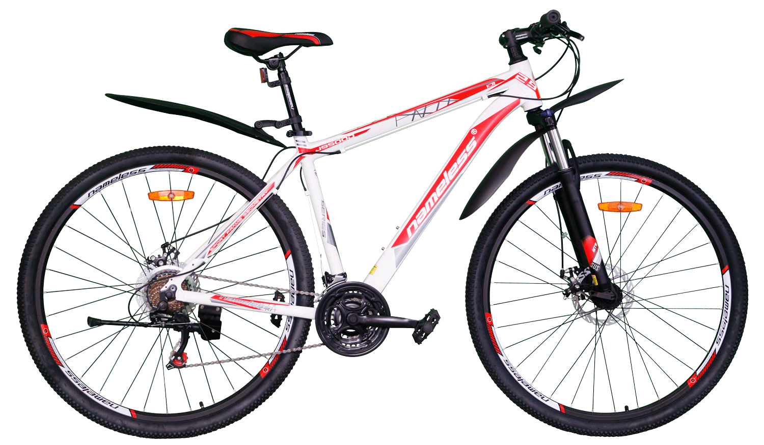 Найнеры можно назвать универсальным типом байков, так как в огромной коллекции найдутся подходящие варианты и для простых любителей велопрогулок, и для профессионалов. Велосипед Nameless J9500D 29 (2021) — образец идеального сочетания хороших скоростных характеристик и максимального комфорта. Выпущен в 2021 году. Колеса дюймов отлично переносят высокие нагрузки. Дисковые механические тормоза хорошо слушаются, что гарантирует успешное выполнение любых маневров. Модель не боится сложных трасс и бездорожья.